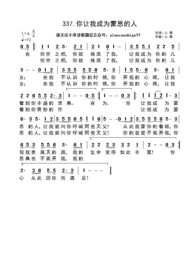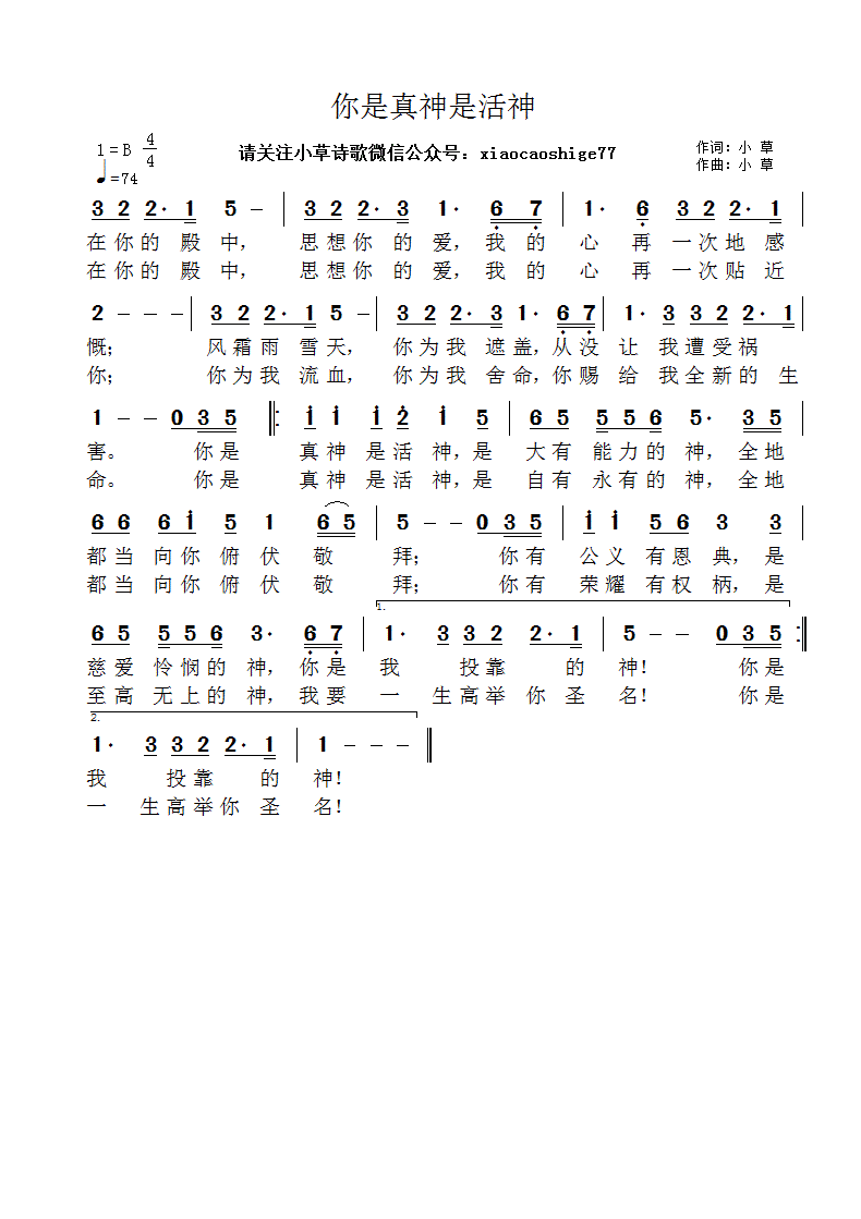 你是真神是活神风霜雨雪天你为我遮盖,你从没让我遭受祸害),全能者啊我的上帝你察看我的道路,你点数我的脚步),你让我成为蒙恩的人,(让我成为)天父的宝贝(让我靠主从来不气馁,高唱赞歌,一无所畏)!